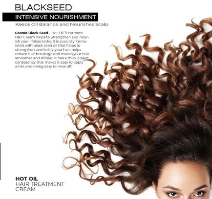 - COSMO Blackseed Hot Oil Treatment Cream protects and revitalizes hair effectively. Infused with black seed extracts and other natural ingredients, this treatment cream provides intensive protection and revitalization to hair follicles for healthy and stronger hair growth.