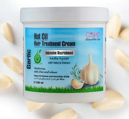 - COSMO Garlic Hot Oil Treatment Cream is the perfect solution for those needing intensive nourishment for their hair. Advanced formula is designed to provide deep nourishment, revitalization, and strengthen hair follicles, reducing hair fall, breakage, and promoting healthy hair growth.