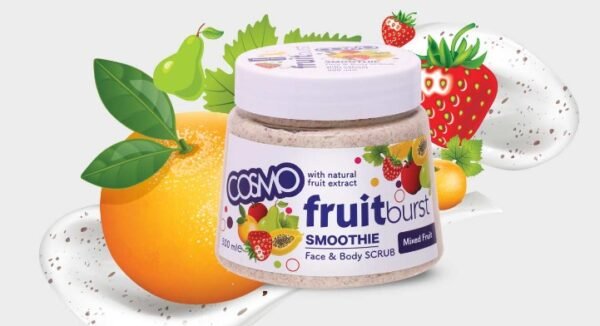 - The COSMO Mixed Fruit Face & Body Scrub features a rich, luscious texture that feels luxurious and indulgent as it glides onto the skin.