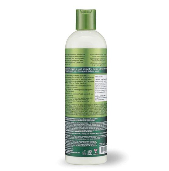 - Moisturizing oil-infused hair lotion formulated to restore and nourish natural, texlaxed, and relaxed hair while helping to strengthen and prevent breakage with Olive Oil and Castor Oil.