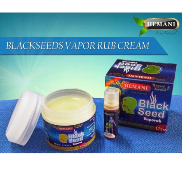 - Black Seed Vapor Rub treats coughs and minor aches and pains.